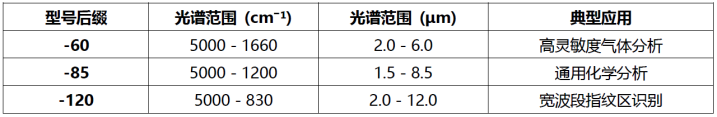 • 高度集成:内置了加热至 1550°K 的碳化硅(SiC)光源,并集成了高灵敏度的热电制冷碲镉汞(TE-MCT)探测器。